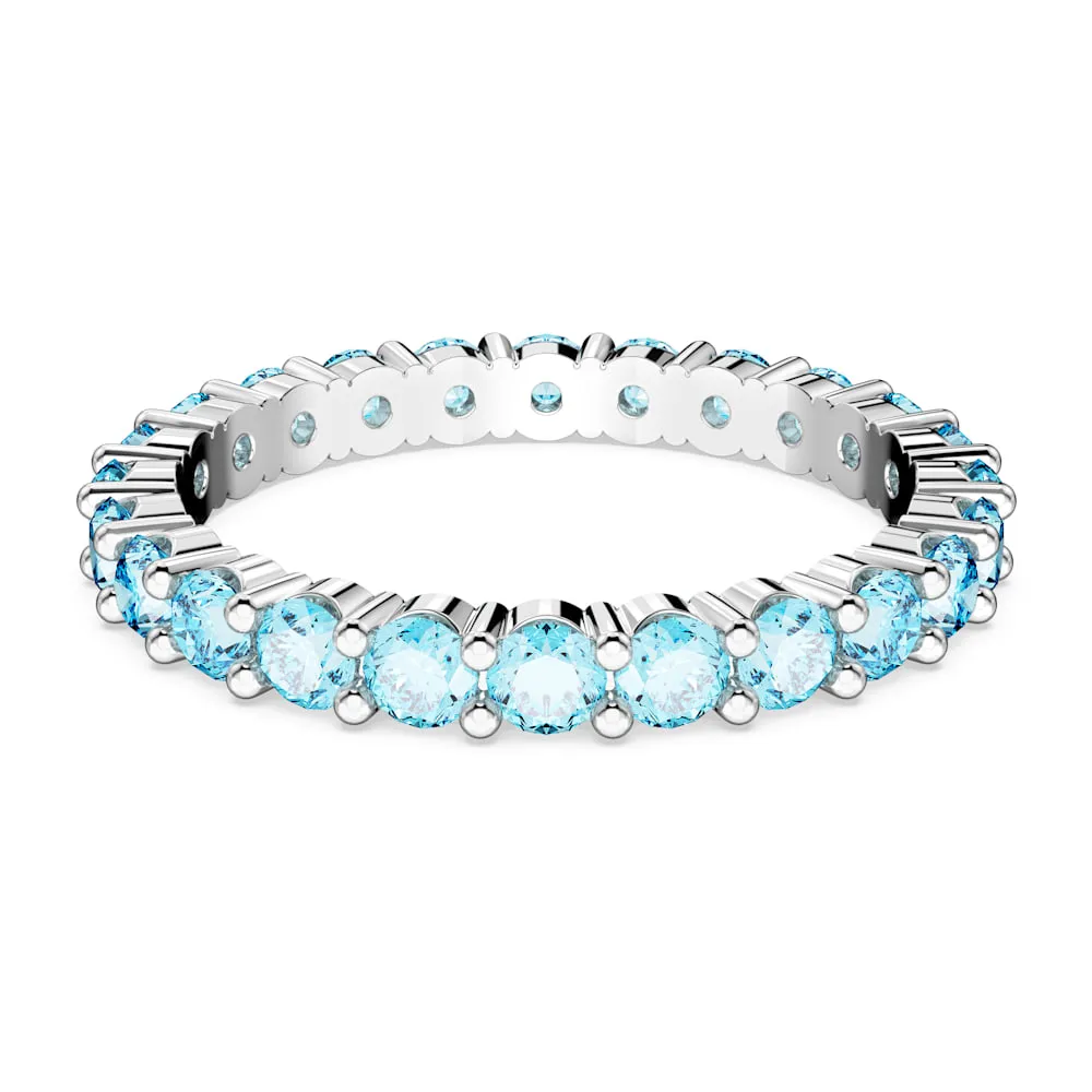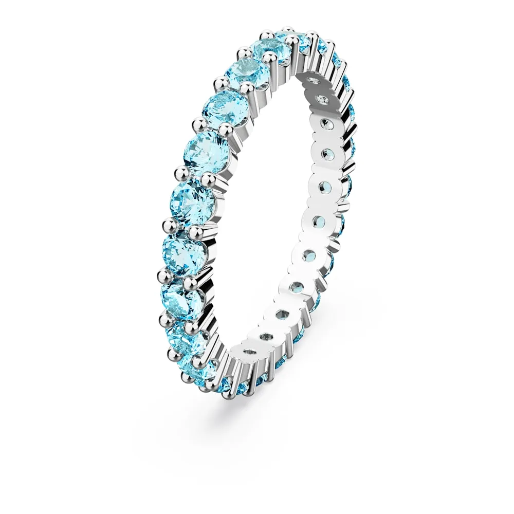 Este alegre anillo se ha elaborado teniendo en cuenta la vitalidad en mente. Engastado en un baño de rodio, el diseño está adornado en su totalidad con llamativas piedras en color aguamarina claro. Apílalo con otros estilos de la familia Matrix para crear tus propias combinaciones deslumbrantes.